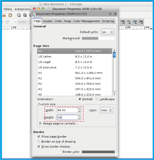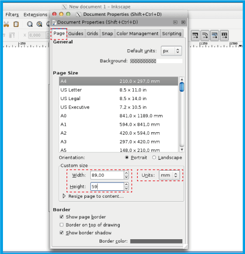 .Įsitikinkite, kad prie dokumento aukščio ir pločio pridedate 4 mm (0,4 cm). 8,5 x 5,5 cm dydžio vizitinės kortelės atveju įdėkite 8,9 x 5,9 cm.