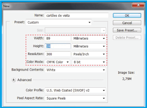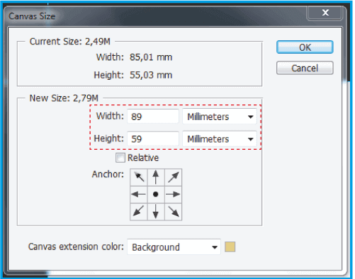 . (žemiau pateiktame paveikslėlyje) nurodykite dokumento dydį nepamiršdami pridėti dar 4 mm aukščio ir pločio, kad sukurtumėte kraujavimą.