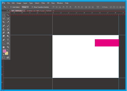 .Bus atsiras kraujavimo linijos, todėl išplėskite savo šabloną iki kraujavimo ribų. Žemiau pateiktame pavyzdyje rausvas ornamentas turėtų būti išplėstas iki sukurtos naujos pabaigos.