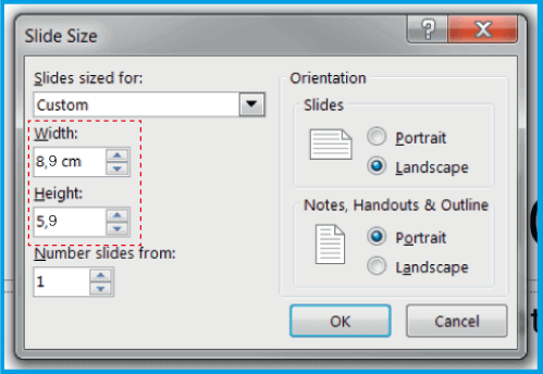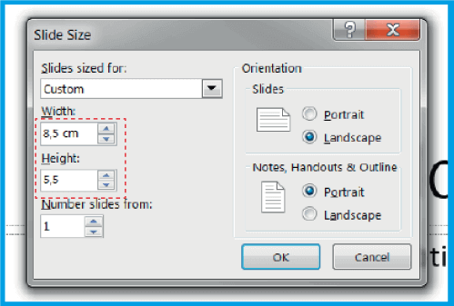 .Įsitikinkite, kad prie dokumento aukščio ir pločio pridedate 4 mm (0,4 cm). 8,5 x 5,5 cm dydžio vizitinės kortelės atveju įdėkite 8,9 x 5,9 cm.