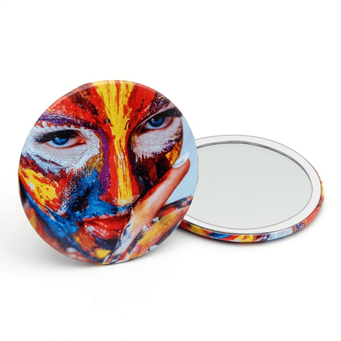 Personalised Badge-Shaped Pocket Mirror! Upload your own artwork or choose from our wide selection of templates and create your custom Badge-Shaped Pocket Mirror