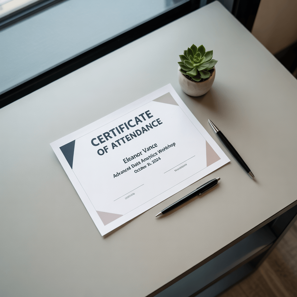 Certificates to verify attendance. Customizable with participant names and event info. Ideal for workshops, classes, and meetings.
