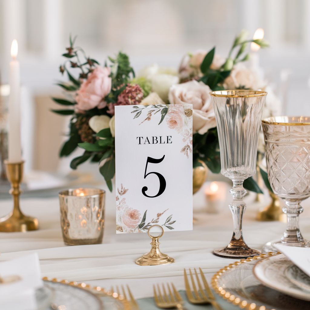 Clear and stylish table number cards. Customizable with fonts, colors, and themes. Perfect for helping guests find their seats.